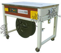 通過拉緊、熱容、切帶、粘合完成打包。使用范圍廣,不管大小包裝,不用調整機器就可以打包,該機屬機械式結構,部分采用進口..